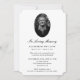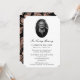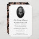 Elegant black and rose gold vintage memorial service/celebration of life/funeral invitation featuring a photo on the front and a vintage floral pattern at the back. Easily personalise this elegant card online.
