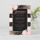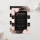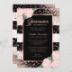 Elegant Black Rose Gold Pink Floral Quinceañera Invitation