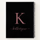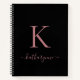 Chic Elegant Pink Rose or Blush Pink Monogram Script on a chic Black Spiral Notebook. Easy to customise with your own name and details. Perfect for your luxury lifestyle! Please contact us at cedarandstring@gmail.com if you need assistance with the design or matching products.