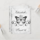 A sweet 16 bithday invitation featuring a elegant design featuring a black outlined Monarch butterfly with a crown hovering, under a simple swirl design with dots around the image. all on a grungey white and grey background. This is 100% made by me, no clip art used