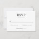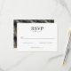 This RSVP card features a clean, minimalist design with ample white space and a simple black text layout. The bold uppercase serif font for "RSVP" is complemented by smaller sans-serif fonts for the date and response options, creating an elegant yet straightforward look. Customisable fields allow guests to write their names and indicate whether they accept or decline the invitation, along with the number of attendees. The modern style emphasizes clarity and simplicity, making it perfect for formal events where a chic and uncluttered aesthetic is desired.
