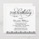 Elegant and chic milestone birthday party invitation features a calligraphy script heading with custom text and damask / striped border detail. Square design. Black and white colour scheme.