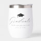 Elegant graduation wine tumbler featuring a black graduation cap at the top with "Graduate" displayed in a modern calligraphy script. Personalise the custom wine tumbler with the graduate's name and class year. This personalised wine tumbler is the perfect gift for the special graduate(s) in your life and makes for an excellent graduation party favour!