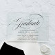 Celebrate your graduate in style with our simple and modern graduation party invitations! Featuring the word "Graduate" in elegant black calligraphy, these unique invitations are designed with a sleek frosted or transparent acrylic background that adds a touch of sophistication to any celebration. Easily customise these acrylic graduation invitations with the graduate’s name, graduation year, school name, and all the important party details. Perfect for showcasing your high school or college graduate’s milestone, these stunning invitations will leave a lasting impression on your guests.
