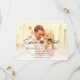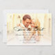 These elegant wedding save the date announcement cards feature a classic black text overlay with engagement photo background. A gold coloured Swiss polka dot pattern appears on the white reverse side of the card.