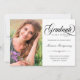 Announce your college graduation to your family and friends in style with this custom calligraphy photo announcement card. This modern typography design template features your photo on the left and to the right elegant black script typography that reads "Graduate Class of 20XX" with your name, honours, school and date to personalise decorated with a delicate floral rose divider. Congratulations on your graduation! Designed by Susan Coffey.