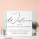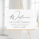 Simple and modern unplugged wedding sign featuring "Welcome" displayed in a modern black calligraphy script with a white acrylic background. Personalise the acrylic unplugged wedding sign by adding a custom message and your names. The black and white unplugged ceremony sign was designed to coordinate with our Modern Elegance wedding collection and is available in other colours.