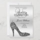 Beautiful and elegant birthday party invite for women, with a sparkly black sequins stiletto high heel shoe with the event details on an elegant gradient silver background. A pretty fashionable and sophisticated feminine design for birthdays. All text, font, and font color is customizable. If you would like help to customize your product or would like matching products please contact me through my store and i will be very happy to help you.
