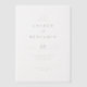 This elegant wedding invitation features a minimalist design with a clean white background, emphasizing simplicity and sophistication. The layout is structured with centred text in a hierarchical manner, using bold serif fonts for the names and date, while a cursive script adds a touch of elegance to the word "and." The black text on a white palette creates a classic look, perfect for conveying formality and refinement. Ideal for couples seeking an understated yet sophisticated aesthetic, this invitation sets the tone for a memorable celebration.