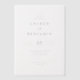 This elegant wedding invitation features a minimalist design with a clean, white background and black serif typography that exudes sophistication. The layout is symmetrical, emphasizing clarity and simplicity through ample negative space around the text. Customizable elements allow for personalization of names, dates, and locations, while maintaining a timeless aesthetic suitable for formal occasions. The mood conveyed is one of refined tradition, perfect for couples seeking an understated yet impactful invitation to celebrate their special day.