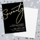 The party details are arranged neatly at the bottom left in classic white serif fonts, keeping the layout minimal and refined. The back side is solid white for a clean, polished finish. All colours and foil options can be customised to match your personal style or party theme.