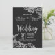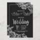 Elegant, chic, and simple modern faux printed silver flowers and typography on fashionable black background, wedding invitations. This classic and sophisticated design is perfect for the trendy and stylish marrying couple. Personalise with your own message on the front as well as a customised monogram initial on the back. All photo print design.
