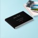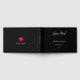 Create your own custom, personalised, simple, beautiful elegant real foil faux silver typography / script / font / calligraphy on black, red hearts, wedding / anniversary guestbook, featuring cover made from premium paper enhanced with luxurious velvet cover lamination. The back features the couple's names with their initials in real foil faux silver on a red heart. Simply type in bride and groom's or wife and husband's names, the wedding / anniversary date, and the couple's initials. to customise. A beautiful, elegant, special keepsake, to let your guests pen their thoughts and keep memories fresh like it was yesterday. Elevate your special occasion, capture heartfelt messages, well wishes, and memories with style and grace with this custom guestbook, personalised for you.