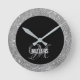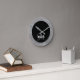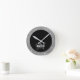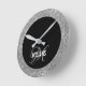 Modern wall clock with a silver glitter border, black background, a grey script monogram and white family name. Personalise with your initial and family name.