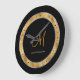 Elegant Black Silver Gold Foil Custom Monogram Large Clock