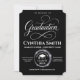 Celebrate your graduate in timeless style with this elegant black and silver graduation invitation. Featuring luxurious calligraphy typography and a classic layout, this editable template is perfect for announcing a graduation party or ceremony. Personalize the name, school, date, and details easily to match your event. Ideal for high school, college, and university graduates who love a chic and modern look.