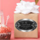 Matching a luminous shimmery silver frame and cute hearts graphic on a black background.