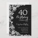 Elegant Black Silver Roses 40th Birthday Party Invitation