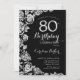 Elegant Black Silver Roses 80th Birthday Party Invitation
