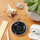 This key chain is personalized for the high school or college graduate. It features a black circle banner with your custom text in silver. The banner is placed on an elegant star shimmer and textured black background with silver star bursts through out. Beautiful, and makes a useful keepsake gift for the graduate.