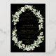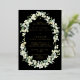 A black reception only wedding invitation, featuring hand painted snowberries and stems of eucalyptus arranged into a beautiful botanical frame. The text and scattered dots on the front of the card are foil pressed. All text is fully editable. Please view this Collection in my store for invitations with alternative wording options, different colours and for coordinating items.