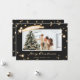 Custom black and sparkly star photo Christmas card featuring a photo frame adorned with a falling star and glowing stars on a black background. Easily personalise this magical photo Christmas card with your photo, the family name and text. The background can be changed to any colour using the customisation tool.