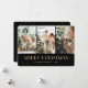 Modern black photo Merry Christmas card featuring a collage of three photos and little stars. Easily personalise this photo Christmas card with your photos and text.