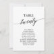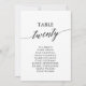 These elegant black table number 20 seating chart cards are perfect for a simple wedding. The neutral design features a minimalist card decorated with romantic and whimsical typography. The card prints on the front and back (double-sided).