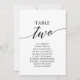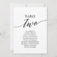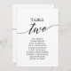 These elegant black table number 2 seating chart cards are perfect for a simple wedding. The neutral design features a minimalist card decorated with romantic and whimsical typography. The card prints on the front and back (double-sided).