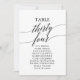 These elegant black table number 34 seating chart cards are perfect for a simple wedding. The neutral design features a minimalist card decorated with romantic and whimsical typography. The card prints on the front and back (double-sided).