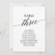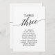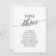 These elegant black table number 3 seating chart cards are perfect for a simple wedding. The neutral design features a minimalist card decorated with romantic and whimsical typography. The card prints on the front and back (double-sided).