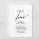 These elegant black table number 4 seating chart cards are perfect for a simple wedding. The neutral design features a minimalist card decorated with romantic and whimsical typography. The card prints on the front and back (double-sided).