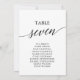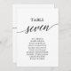 These elegant black table number 7 seating chart cards are perfect for a simple wedding. The neutral design features a minimalist card decorated with romantic and whimsical typography. The card prints on the front and back (double-sided).