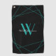 Elegant Black Teal Monogram Name Script Golf Towel