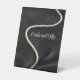 Elegant thank you note with black satin and pearls, making it ideal for a formal and elegant themed birthday party.
