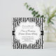 Elegant black and white formal wedding or special event invitation with a chintz floral background.