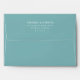 This wedding envelope features a clean, minimalist design with centered text on a solid teal background. The layout is simple and elegant, utilizing a serif font for a sophisticated touch. The color palette consists of white text against the calming teal, creating a professional and reserved mood perfect for formal occasions. Customizable placeholders allow for personalization with names, addresses, and zip codes, making it ideal for weddings or other significant events.