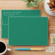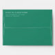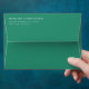 This wedding envelope features a minimalist design with a solid green background and crisp, centred typography. The layout is clean and elegant, utilising ample negative space to highlight the text, which includes customisable names and addresses in a bold serif font. The modern style conveys sophistication and formality, making it perfect for weddings or formal events. Its simple yet refined aesthetic ensures readability while maintaining an uncluttered appearance, ideal for those who appreciate classic elegance.