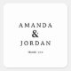This wedding sticker features a minimalist design with a clean, centred layout on a white background. The bold serif font highlights the names at the top, while a smaller sans-serif font adds a touch of elegance for the "thank you" message below. The black and white colour palette emphasizes simplicity and sophistication, making it perfect for expressing gratitude in a modern and stylish way. Ideal for weddings or formal events, this sticker combines classic typography with contemporary aesthetics to create a refined and heartfelt keepsake.