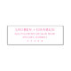 This elegant rubber stamp features a clean, minimalist design with centred text elements on a white background. The layout is simple and balanced, utilising ample negative space for a modern look. The classic serif font adds sophistication, while the black colour palette ensures clarity and contrast. Perfect for personalising documents or adding a formal touch to invitations, this stamp combines functionality with understated style.