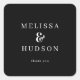 This square sticker features a minimalist and elegant design with a black background and crisp white text. The layout is centered, showcasing two names in bold serif font, separated by an ornate ampersand symbol, followed by the phrase "thank you" in a simpler sans-serif style. The monochromatic color palette emphasizes sophistication and clarity, making it perfect for expressing gratitude in a formal setting. Its timeless typographic style conveys appreciation and respect, ideal for acknowledgments or thank-you notes.