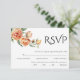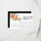 Elegant black typography and peach peonies wedding RSVP card