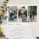 This simple, stylish modern three photo wedding save the date flat card template features your photos and 'SAVE the DATE' conveyed with a striking blend of two distinct fonts, with 'and' in a light, flowing script between the other two words, which are in upper case with a bold, crisp formal look. This element of the design is an image and can't be altered. But you might choose to change the font, punctuation or colour used for the other text on the front and/or back. For example, you might choose to give a certain colour to your names and/or date text. on the front. Or you might choose to delete something or change a text field entirely with a different message. The default colour for your names and date on the front are a slightly softened black. On the back we chose an atypical order for the information, putting the 'please save the date' text after the 'for the wedding of' text, which lends a path less travelled charm to it. You can easily alter this order or change anything else to suit your needs. On back, we've picked a tone called White Smoke that's a very light grey, with mostly white in it. You can easily change this by either picking one of the basic colours in the editing tools or entering a colour number if you have a specific hue in mind that you found in your research, or by looking at the colour spectrum tool and choosing something by sight. The default text tone on back is a very dark grey that's mostly black, but you can edit this in favour of another text colour, and you can also change any of the font. Use the intuitive editing and design tools, your favourite photos and your inspiration to make this simply chic custom multi photo collage wedding save the date card uniquely yours!