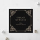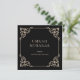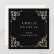 This is an elegant style Umrah Mubarak greeting card with a black charcoal background. Give this as a printable to your friends and family members to celebrate and give warm wishes for coming back from their blessed Umrah trip. Islamic Muslim holiday card. This card has a gold baroque leaf filigree decoration in the corner of the frame to give a luxurious and royal-inspired feel. Simple golden script typography. You can personalise this beautiful card by changing the names to the people who are sending out this card. Antique design. You can edit the text on the back of the card to make it unique for you. Prayers. Blank envelope. Her line for design.