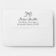 Add a touch of elegance to your mail with this custom envelope featuring a hand-drawn bow on the flap. The customer’s name is displayed in a whimsical black script, creating a sophisticated yet charming look. Personalise the envelope flap with your return address for a stylish and practical finishing touch. Perfect for wedding envelopes, graduation announcements, invitations, baby showers, bridal showers, and more, this versatile envelope design adds a special detail to any occasion.