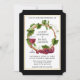 Modern Elegant Watercolor Grapes and Vines Wood Wreath Wedding Invitation - Black Background and Gold Frame