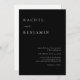 Modern, simple, and minimalist black wedding invitation - double-sided. The back side includes a QR code so your guests can RSVP online through your wedding website or email.