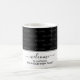 Elegant Black WELCOME TO OUR HOME guest coffee mug with customisable text so you can create your own welcome and/or add your name, eg. Welcome to our guest house, etc. Elegant script typography and subtle tiled pattern saying WELCOME makes this black and white monochromatic coffee mug a stylish addition to welcome guests to your home, your guest house or to your business reception area. Available in other trending and popular colours. Matching guest book and other gifts available. Choose from a wide selection of welcome and hospitality gifts designed by Berean Designs.