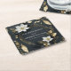 Elegant Black White and Gold Floral Wreath Wedding Square Paper Coaster