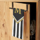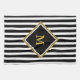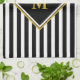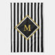 Elegant Black White and Gold Monogram Striped Tea Towel